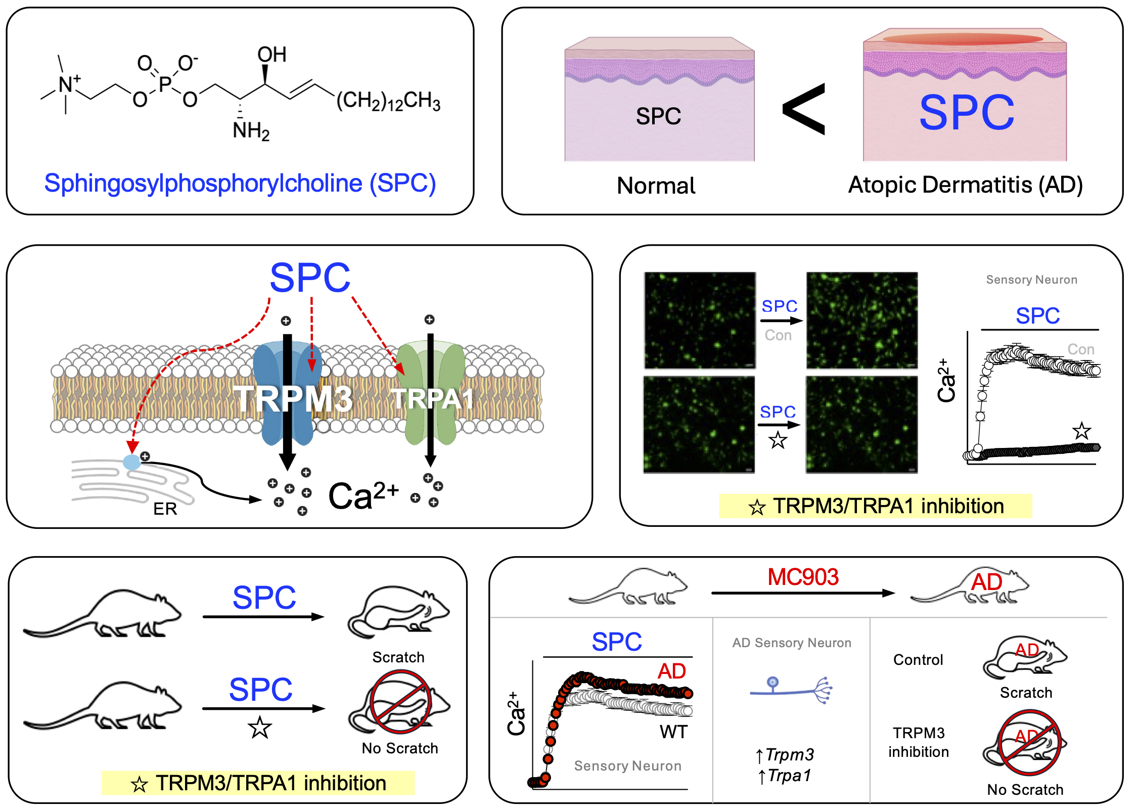 Song DE, Rawal D, Lee WJ, Shim WS. Sphingosylphosphorylcholine induces itch via activation of TRPM3 and TRPA1 in mice.